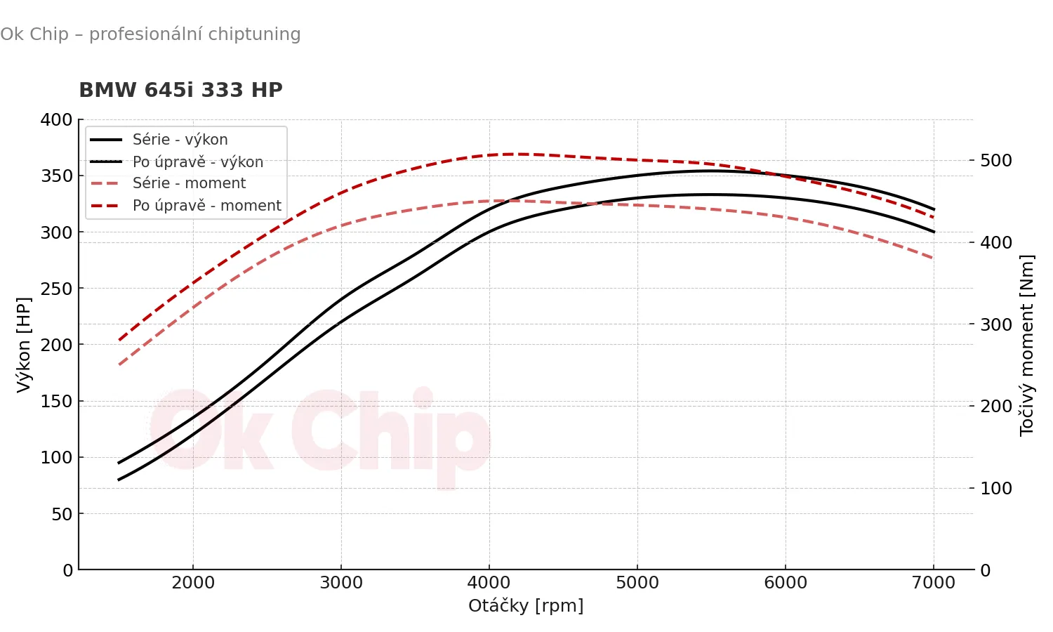 BMW řady 6 je symbolem elegance, sportovního ducha a luxusu. Verze 645i s osmiválcovým atmosférickým motorem o výkonu 333 HP (245 kW) patří mezi vyhledávané vozy pro ty, kteří chtějí kombinaci komfortu a čistokrevného sportovního projevu. Přesto i u takového motoru se skrývá rezerva, kterou lze odemknout profesionálním chiptuningem.