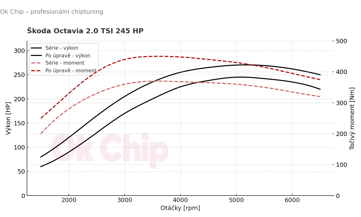 Škoda Octavia RS je symbolem rychlosti, precizního řízení a univerzálního výkonu zabaleného do praktického kabátu. Model s motorem 2.0 TSI o výkonu 245 HP (180 kW) je už z výroby silný, agilní a perfektně vyvážený. Ale jak to bývá u přeplňovaných jednotek – vždycky se v nich skrývá ještě kus nevyužitého potenciálu. A přesně ten jsme odemkli profesionálním chiptuningem.