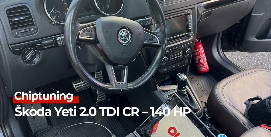 Škoda Yeti byla ve své době jedním z nejoriginálnějších SUV na trhu. Spojuje praktičnost rodinného vozu s odolností a terénní jistotou, kterou si oblíbili řidiči po celé Evropě. Verze 2.0 TDI CR o výkonu 140 HP (103 kW) je spolehlivá, úsporná a oblíbená pro svůj vyvážený charakter – ale zároveň nabízí prostor pro výrazné zlepšení jízdní dynamiky.